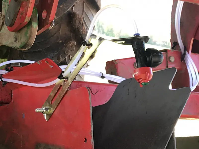 The In-furrow V2 is designed to spray soil treatments like Amistar or Velum Prime on to the soil around the seed potato at planting.