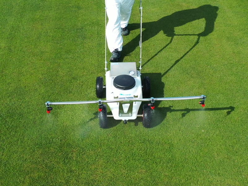 The Acuspray Solo is a battery powered pedestrian sprayer used to apply pesticides, liquid fertilisers or moss treatment to large playing surfaces and fine lawns.
