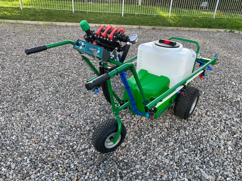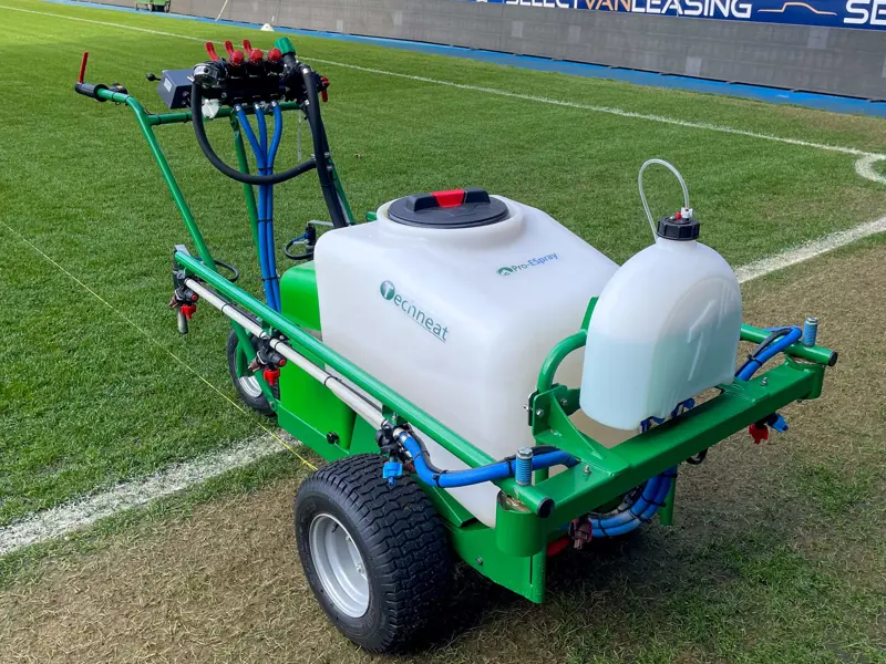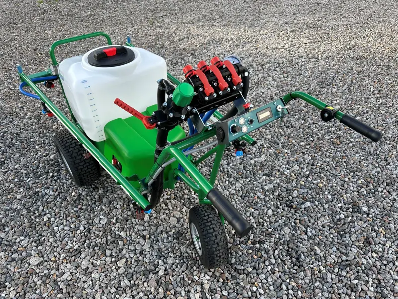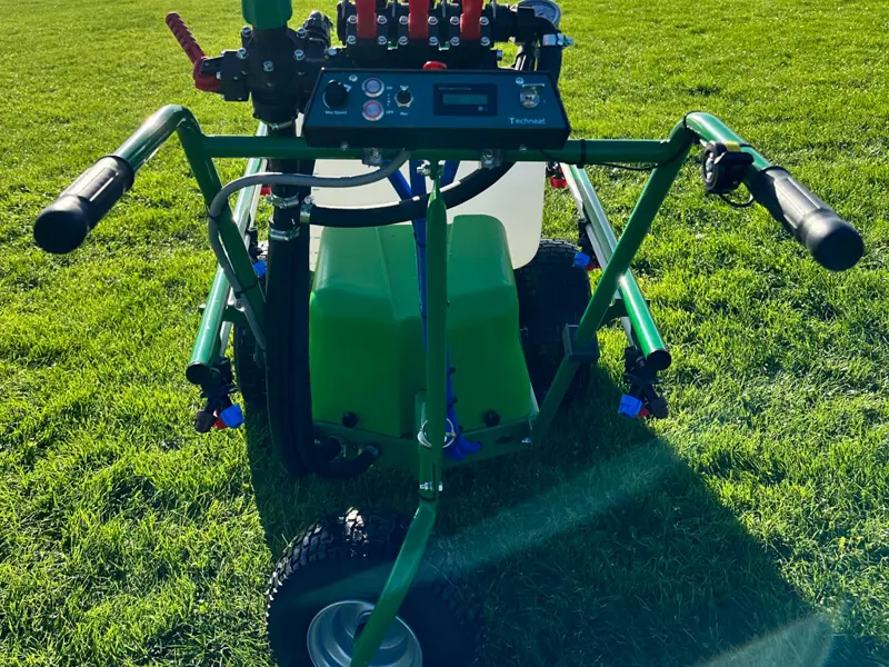 Key Features include high capacity Li-on battery and diaphragm pump specified to offer excellent flow and pressure outputs. The controls follow our extensively used engine-driven SPPS with individual three way boom section controls. This coupled to the triple nozzle holders on the 3 or 4m boom options makes the Pro-ESpray a very capable machine aimed at the professional Groundsman or Contractor.