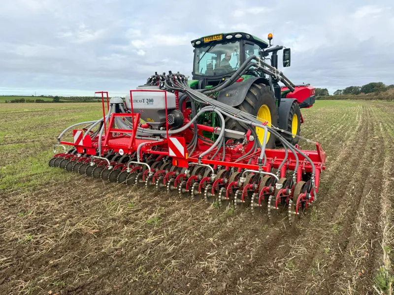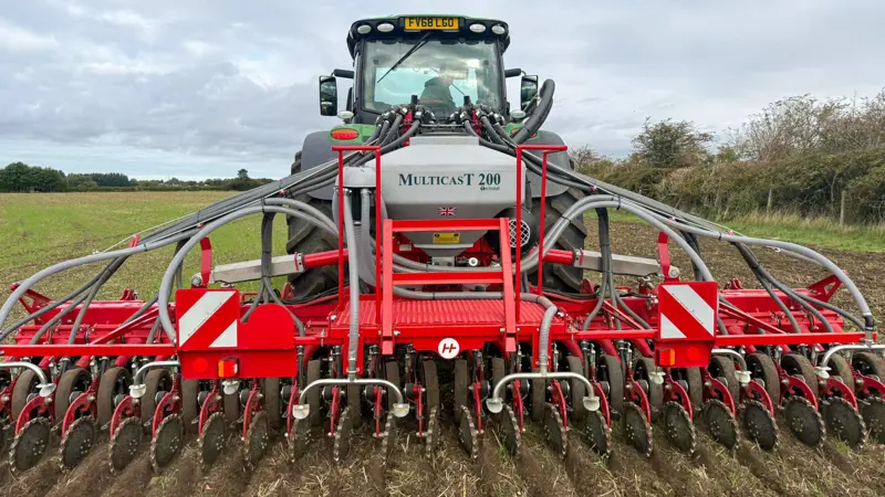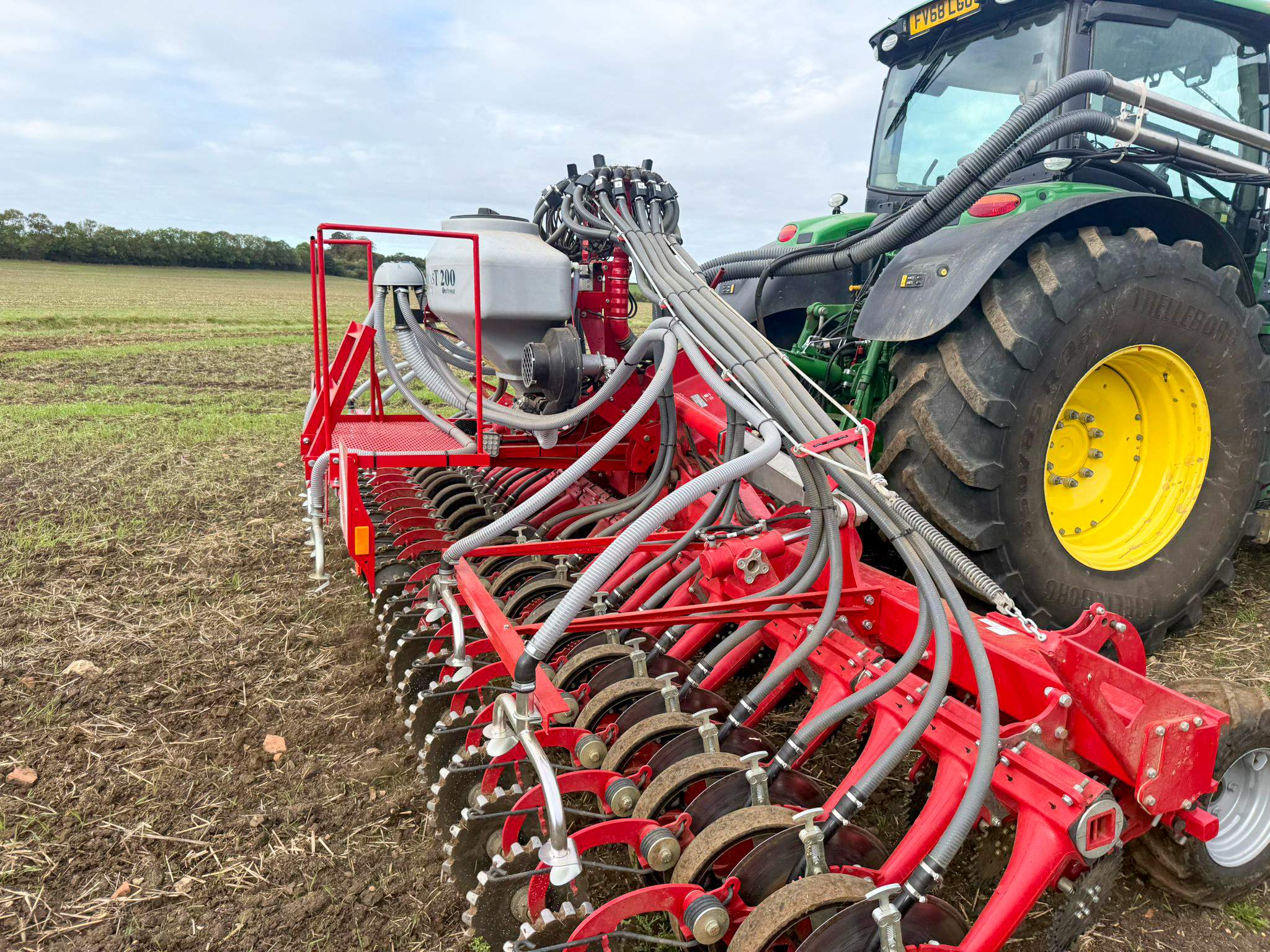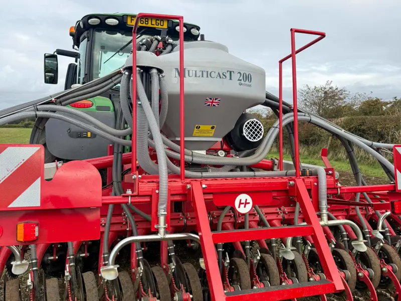 It can be supplied with dual tanks which fits well onto a combine header to establish OSR and apply slug pellets simultaneously (Autocasting).
