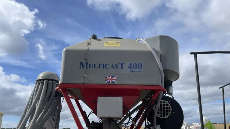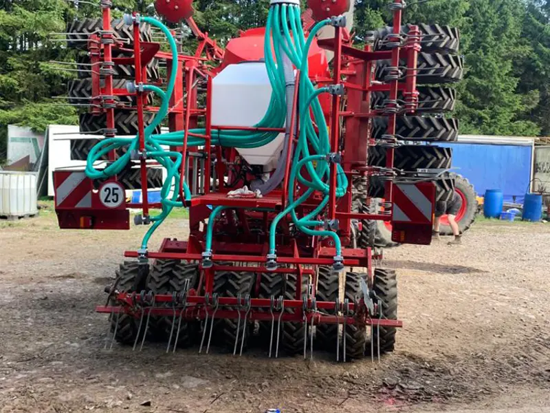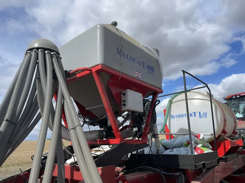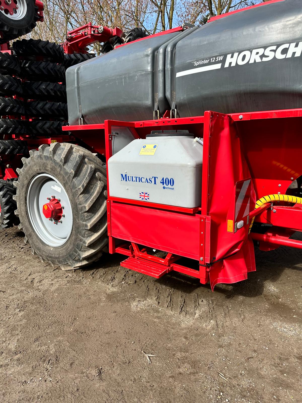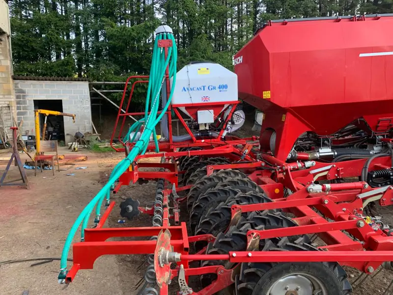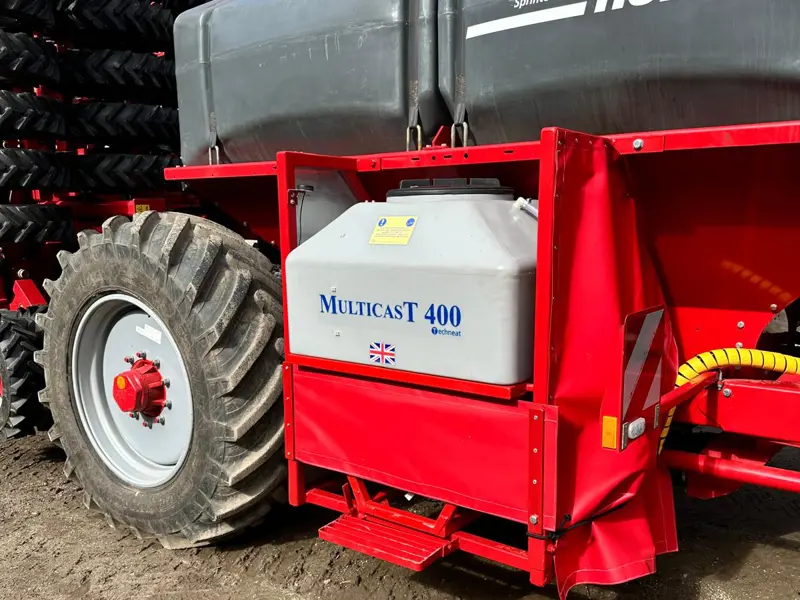The 400L tank version is typically mounted on large rolls or drills. Reducing the number of passes on the field cuts down soil compaction and fuel costs. The unit has a 400L hopper and uses the Techneat rate controller to monitor forward speed and adjust output automatically using a Garmin GPS sensor. Different distribution heads are available to suit all widths - outlet options include the well proven twin spreader plates giving 500mm spacing across the machine or a conventional single spreader plate.