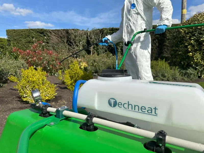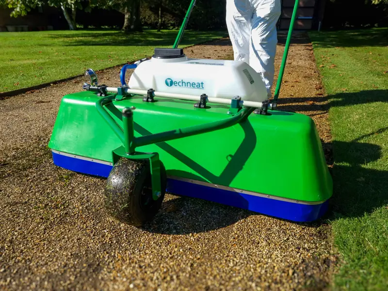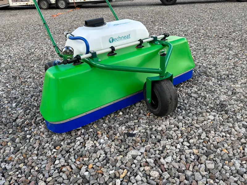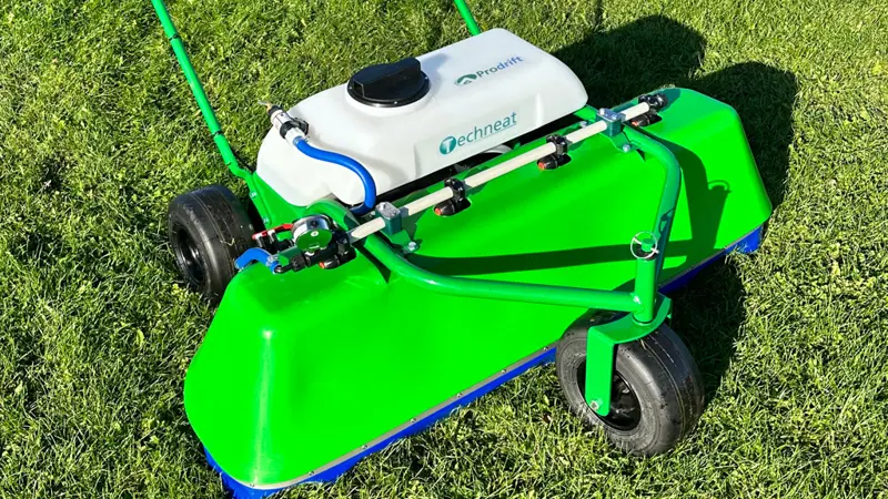 A brand new addition to the Techneat range of sprayers - The Prodrift - uses a High Power Li-On Battery to power a 12v pump supplying 4 spray nozzles mounted into a spray hood. Using 2 fixed wheels and a single pivot wheel at the front the machine is extremely easy to use and spray up against boundaries - its flexible skirt retaining all spray drift. This enables the machine to be used in not only critical areas but in less than favorable weather conditions.