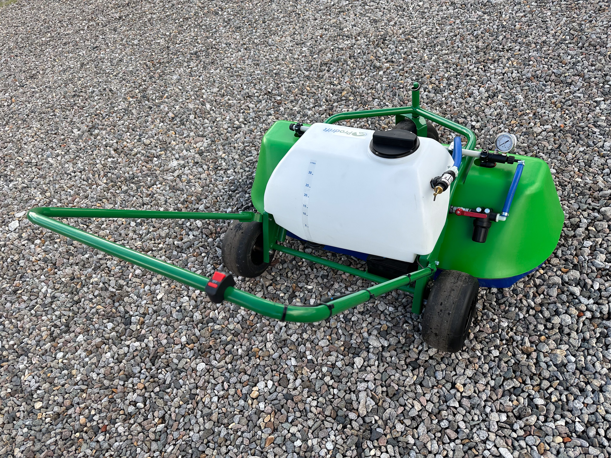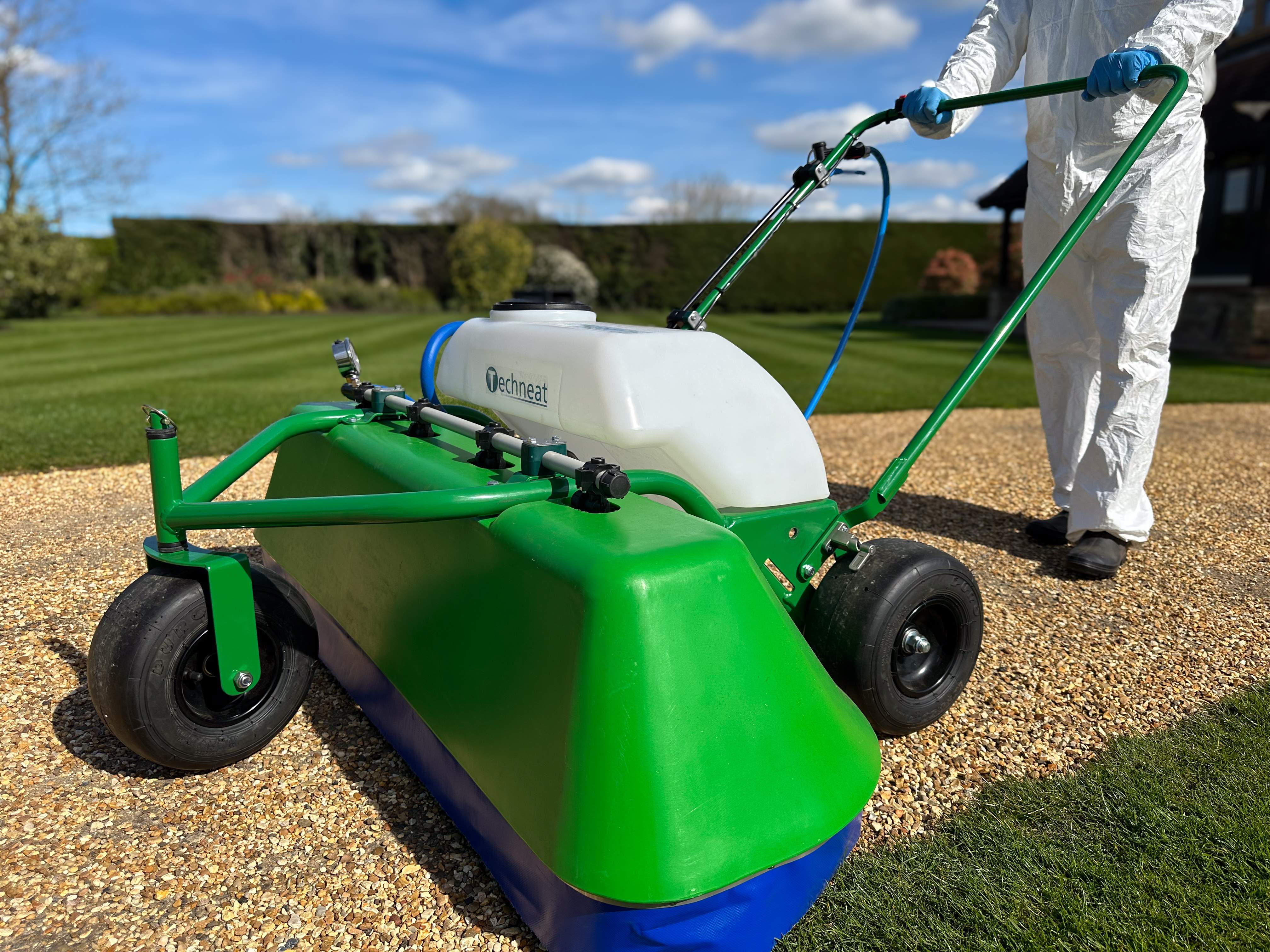 A brand new addition to the Techneat range of sprayers - The Prodrift - uses a High Power Li-On Battery to power a 12v pump supplying 4 spray nozzles mounted into a spray hood. Using 2 fixed wheels and a single pivot wheel at the front the machine is extremely easy to use and spray up against boundaries - its flexible skirt retaining all spray drift. This enables the machine to be used in not only critical areas but in less than favorable weather conditions.