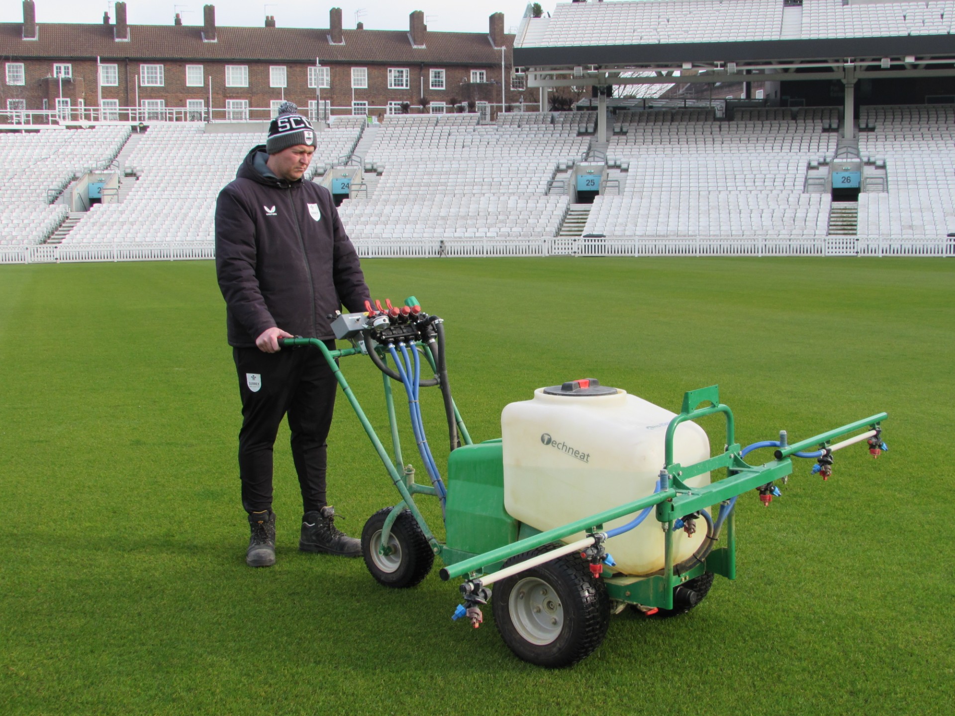 New Investment in battery-powered electric sprayer ensures playing surface is always at its best says Oval’s Deputy Head Grounds Manager